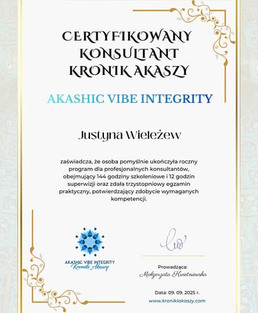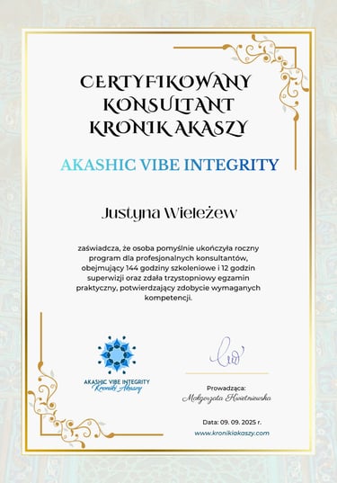 Dwie przestrzenie stały się szczególnie bliskie mojemu sercu - Kroniki Akaszy oraz bycie medium. Obie są dla mnie równie ważne i prowadzą do głębokiego połączenia z tym co subtelne, prawdziwe i często niewidzialne.